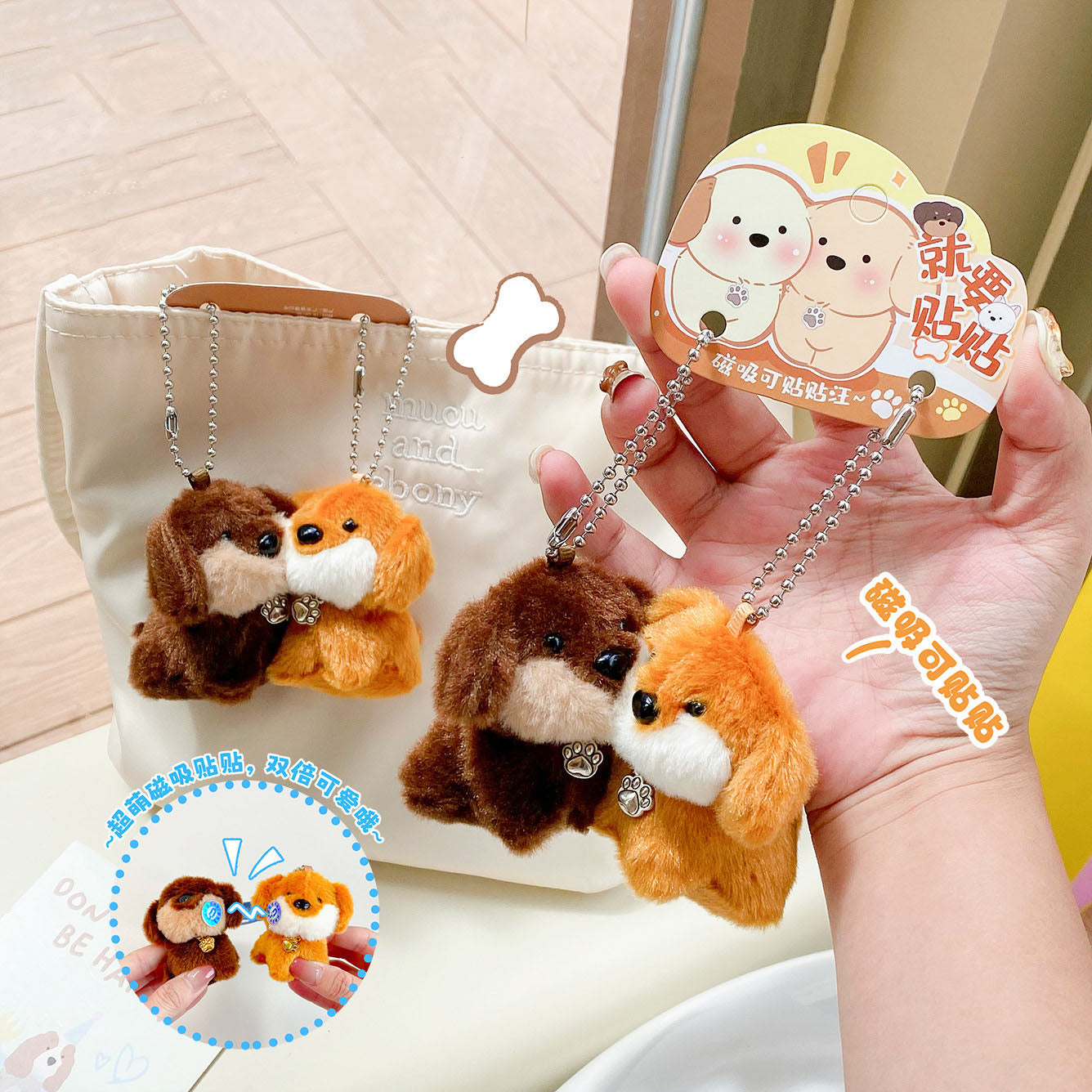 Cute Pet Charm Couple Magnetic Dachshund Keychain